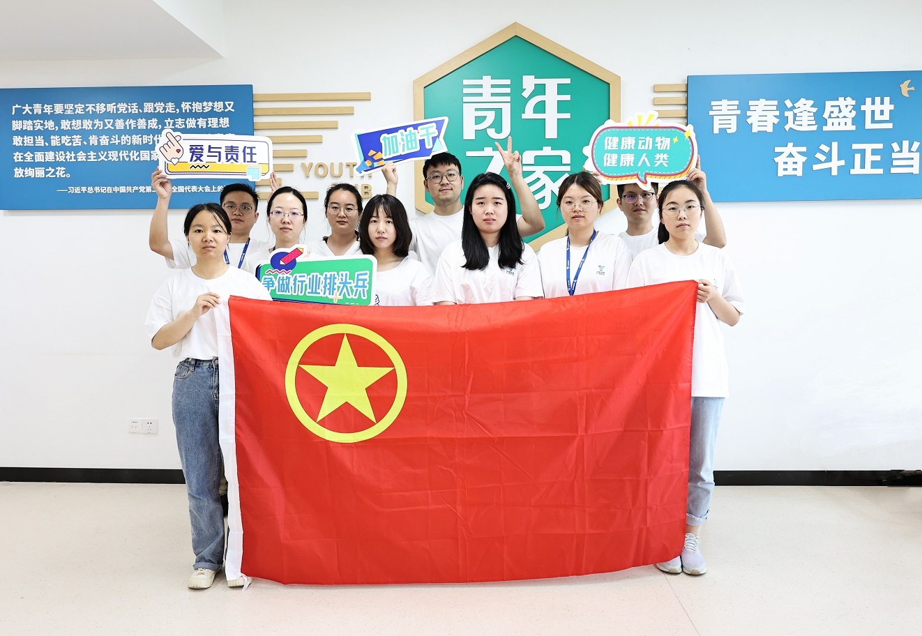 公司團委號召廣大青年團員不斷加強素質(zhì)、能力的培養(yǎng)和鍛煉,不斷強化自身責任意識,不斷增強使命感和責任感,勇?lián)鷷r代重任,以飽滿的熱情、必勝的信心,把火紅的青春投入到動保高質(zhì)量發(fā)展的大潮中,為創(chuàng)造動保更加美好的明天努力奮斗。
