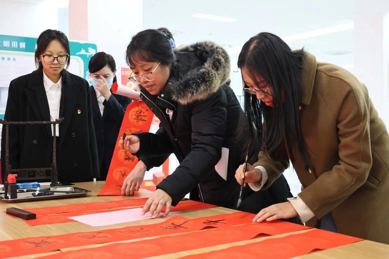 揮毫潑墨,凝神動筆。紅紙翻飛,墨香四溢。一句句美好的新年祝福躍然紙上。一幅幅春意盎然的對聯(lián),一張張喜氣洋洋的“福”字,皆是對新的一年滿滿的祝福和祈愿。